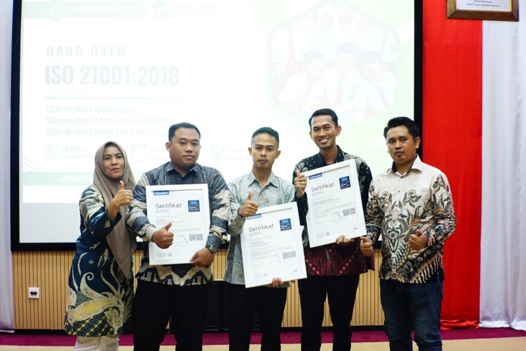 Yayasan Bumitama tetap menjaga Komitmen dalam menyelenggarakan pendidikan berkualitas dan berstandar internasional dengan pencapaian yang diraih oleh Sekolah Bumitama. Tiga sekolah jenjang sekolah dasar di bawah naungan yayasan Bumitama, yaitu SDS Bumitama SBHE, SDS Bumitama Kotawaringin, dan SDS Bumitama KBAS, secara resmi menerima Sertifikat ISO 21001:2018 – sebuah standar internasional untuk Sistem Manajemen Organisasi Pendidikan oleh Badan Sertifikasi ISO 21001:2018.
